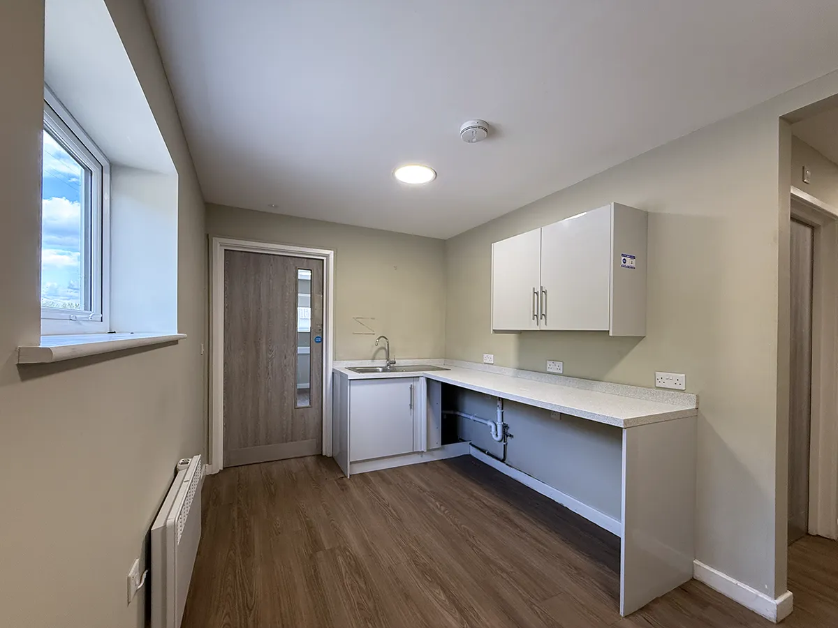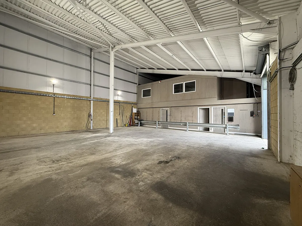 The property comprises a steel portal framed industrial building under an overclad roof with part steel and part block elevations. The warehouse offers a clean storage facility having been previously used for food storage with and eaves height of 4m rising to 7.53m and LED lighting. The loading door is 4m high x 3m wide. Well presented two storey offices are located to the front of the building. The specification includes double glazed windows, painted walls, fully carpeted, electric heating, excellent welfare facilities, ground and first floor W/Cs. The unit benefits from external concrete yard areas providing good loading and circulation space.